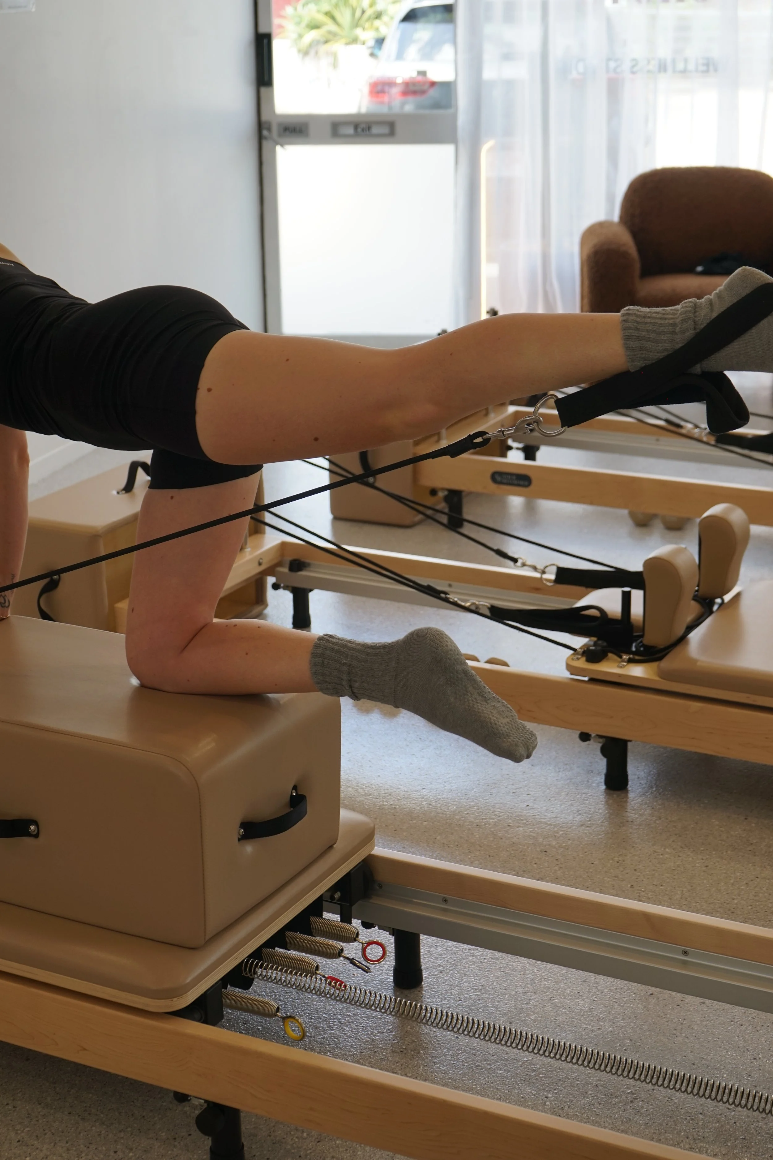 This is our strength focused class. Designed to build power, endurance and tone. Utilising dumbbells, heavy springs and dynamic strength-focused movements, this class blends traditional Pilates technique with progressive resistance training to leave you feeling stronger, energised and in control. Prior reformer experience is recommended.